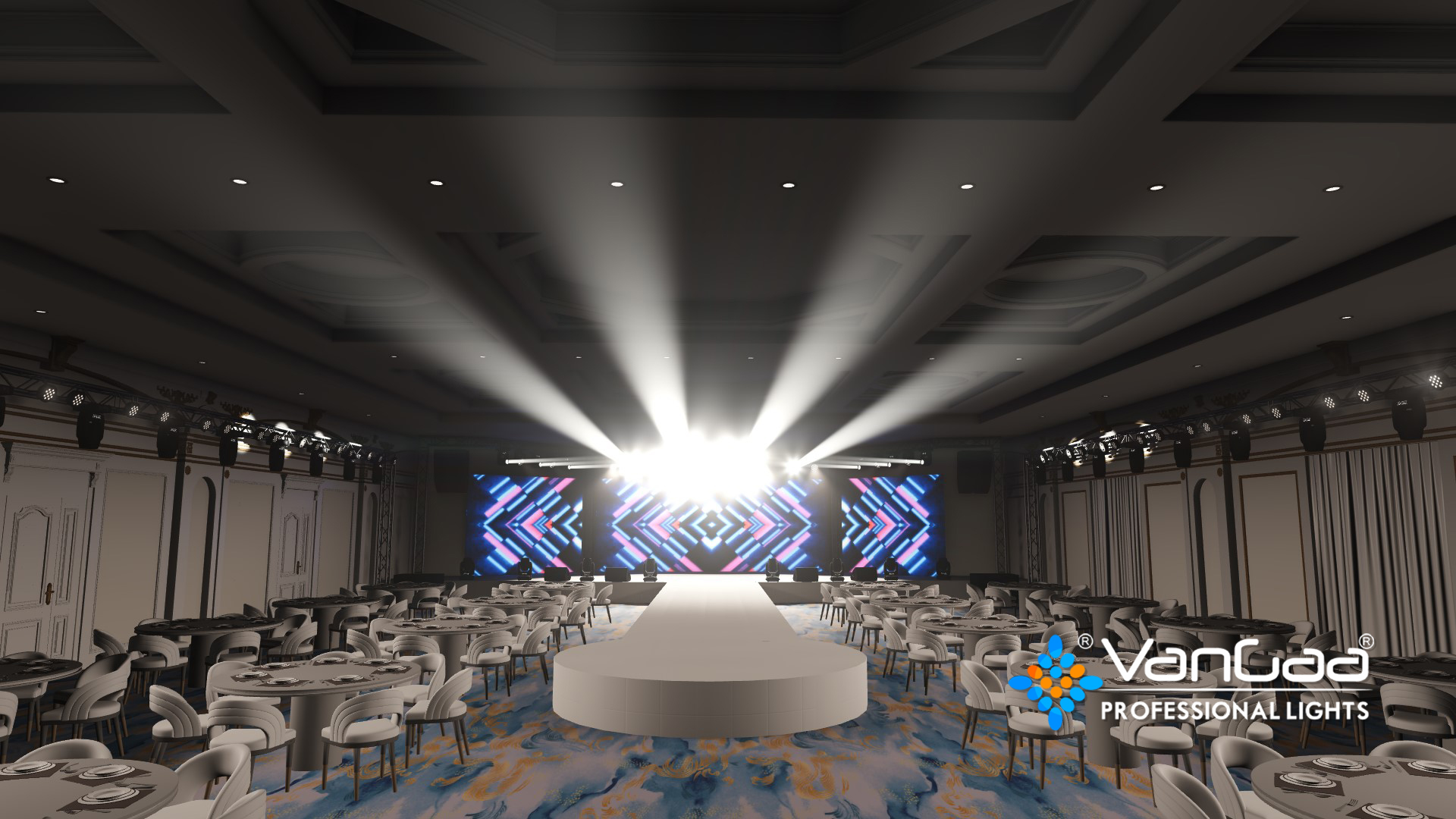 소형 연회장의 공간 제약(일반적으로 50~150㎡)으로 인해 조명은 다목적이어야 합니다. 평소에는 "인물"에 집중해 균일한 전면광과 입체적인 측면광을 확보하고, 공연 시에는 "공간"에 집중해 LED 스크린과 빔 라이트로 몰입형 환경을 구축합니다. 핵심 원칙은 "층별 인물-공간 및 구역별 정적-동적"입니다. 전면광과 측면광은 "인물"의 기본 조명을 담당하고, LED 스크린과 빔 라이트는 "공간"의 분위기 연출을 맡습니다. 서로 방해되지 않고 시너지를 내 효과를 높이는 것이죠.